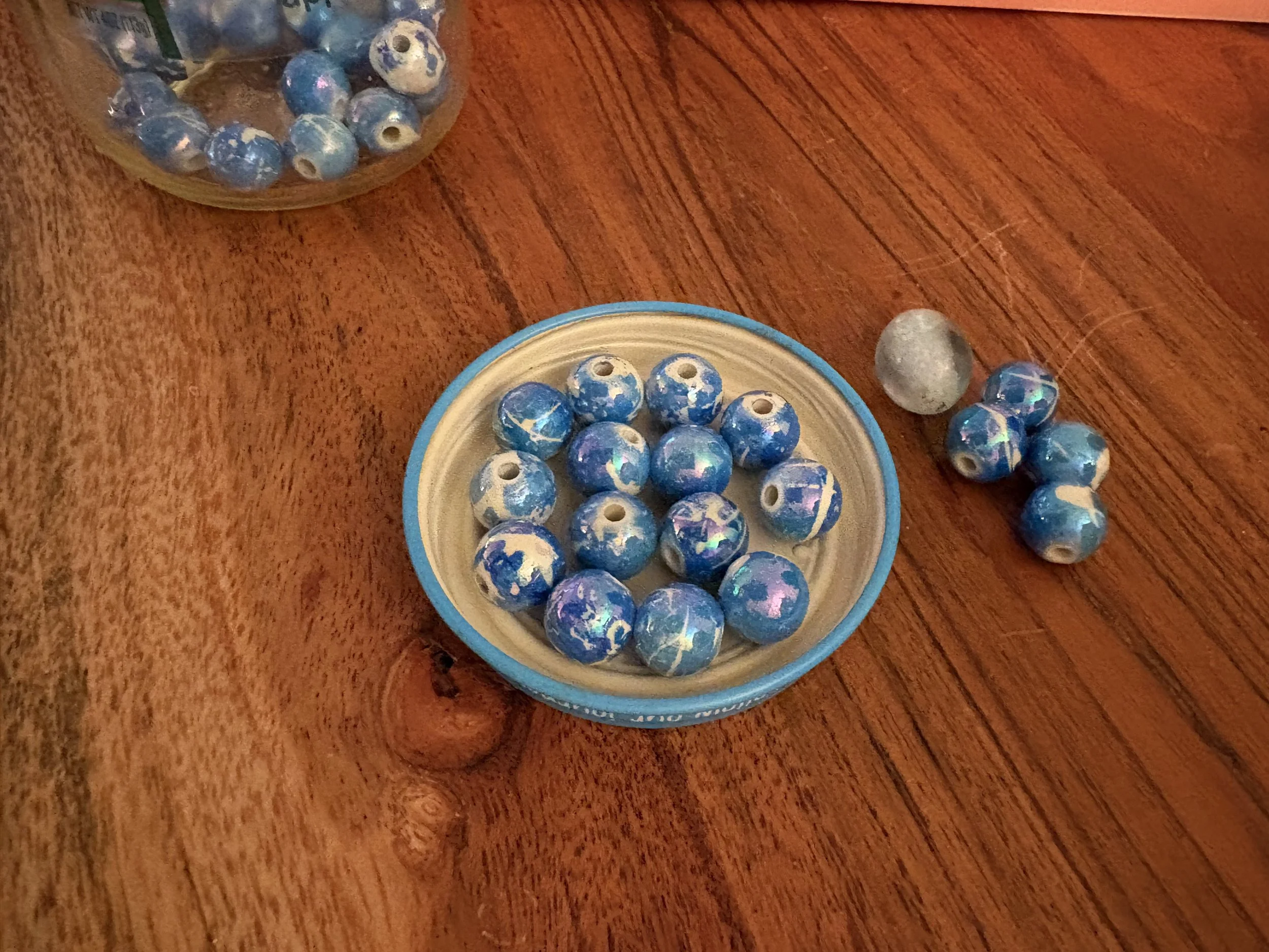 108 beads of a comfortable size made from whatever material speaks to you and will amplify your intention. When I purchased my beads, from the big craft store here, the selection was very limited and I felt pressured to get wood beads as that is what you see most often. However, when I spotted these bright shining blue beauties I knew that they were the ones. Thought not of a traditional material- I feel the suit my intentions in their own way.